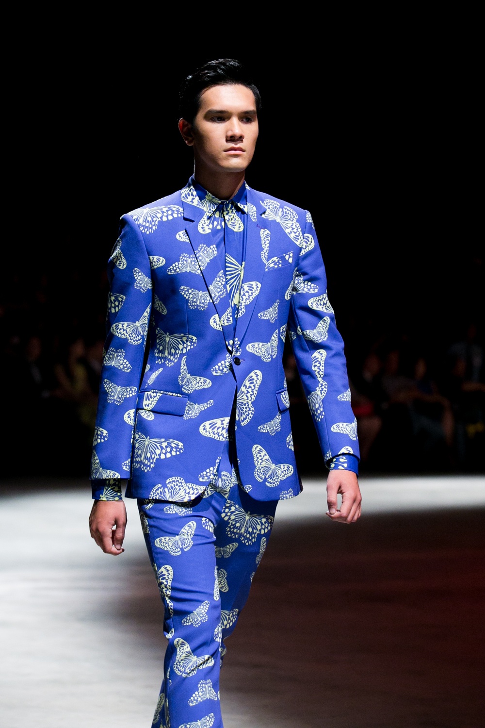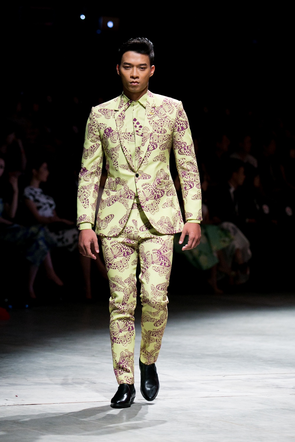 Các mẫu áo vét dành cho nam cũng được in trên chất liệu họa tiết bướm sắc màu. |