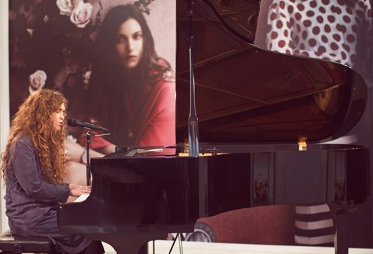 Nữ ca sĩ Rae Morris trình diễn tại cửa hiệu Burberry Kerry Centre.