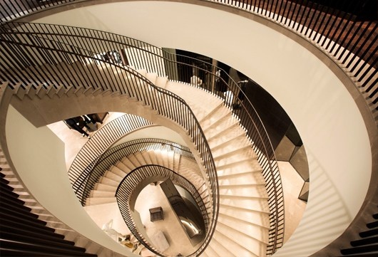 Không gian liên hoàn giữa các khu vực thời trang, phụ kiện và mỹ phẩm giúp khách hàng dễ dàng di chuyển. Hình ảnh chiếc cầu thang cuốn đặc trưng lấy cảm hứng từ cửa hiệu của Burberry tại Regent Street.