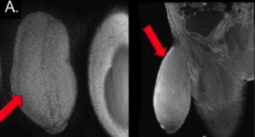 | Ảnh chụp X-quang cho thấy dương vật của bệnh nam 17 tuổi phát triển lớn dị thường, gây nhiều bất tiện và khó chịu cho khổ chủ. |