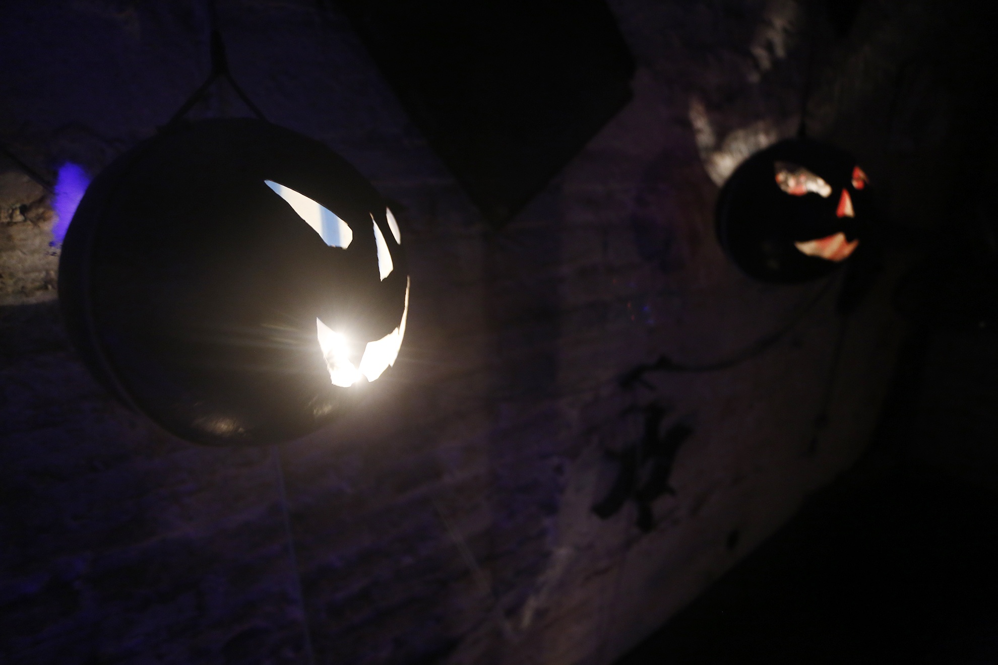 Những quả bí kỳ dị được treo rất nhiều tại quán. Đây là biểu tượng thường xuất hiện trong những câu chuyện ma hoặc lễ Halloween của phương Tây.