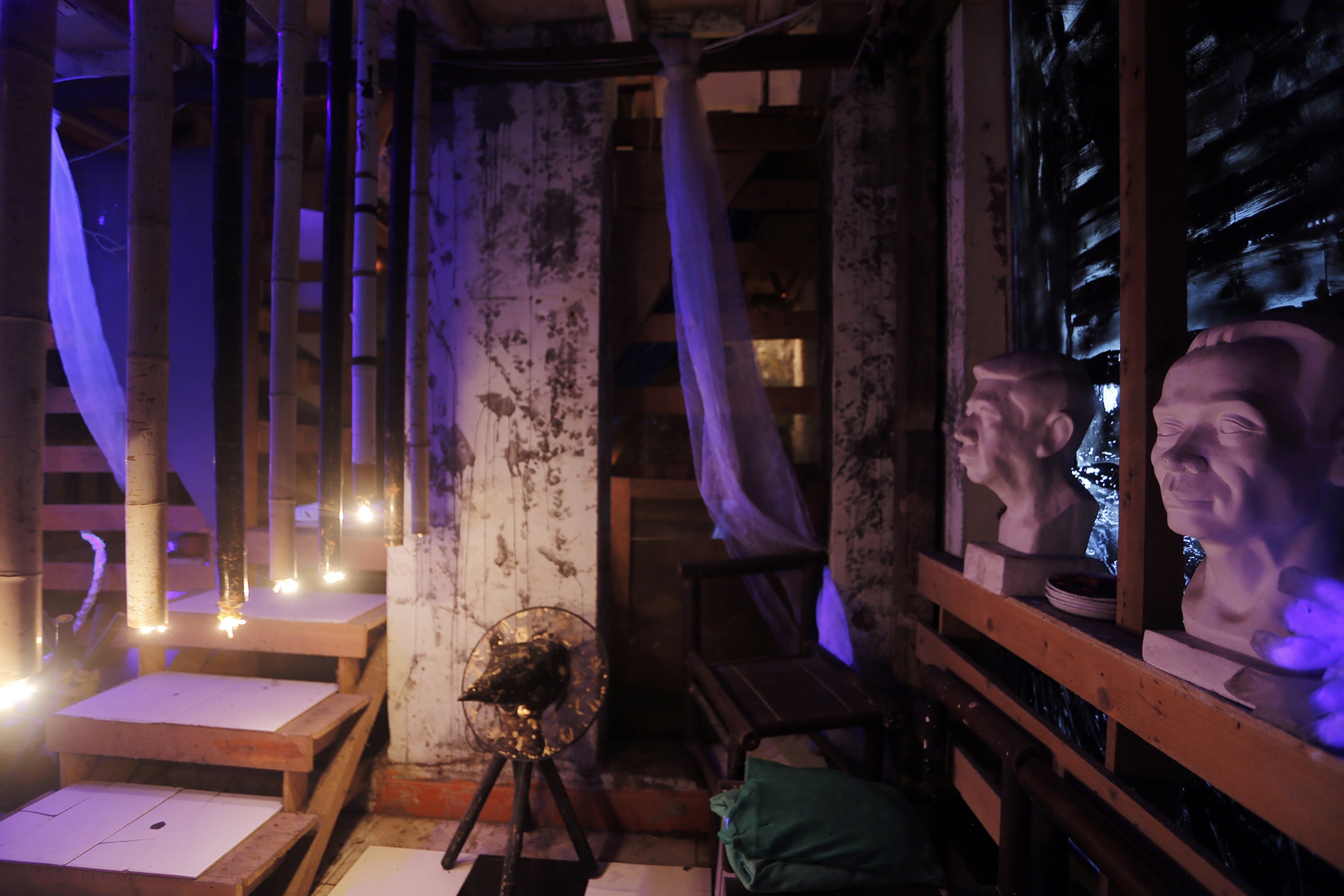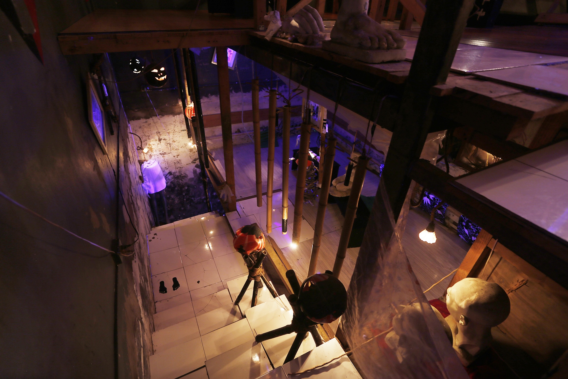 Quán có 3 tầng, mỗi tầng được trang trí với bối cảnh khác nhau. Ánh sáng nhập nhoạng khiến cảm giác người ngồi uống cà phê khá sợ hãi. Đồ uống tại đây có mức giá vừa phải. Một cốc cà phê nâu, đen giá 25.000 đồng.