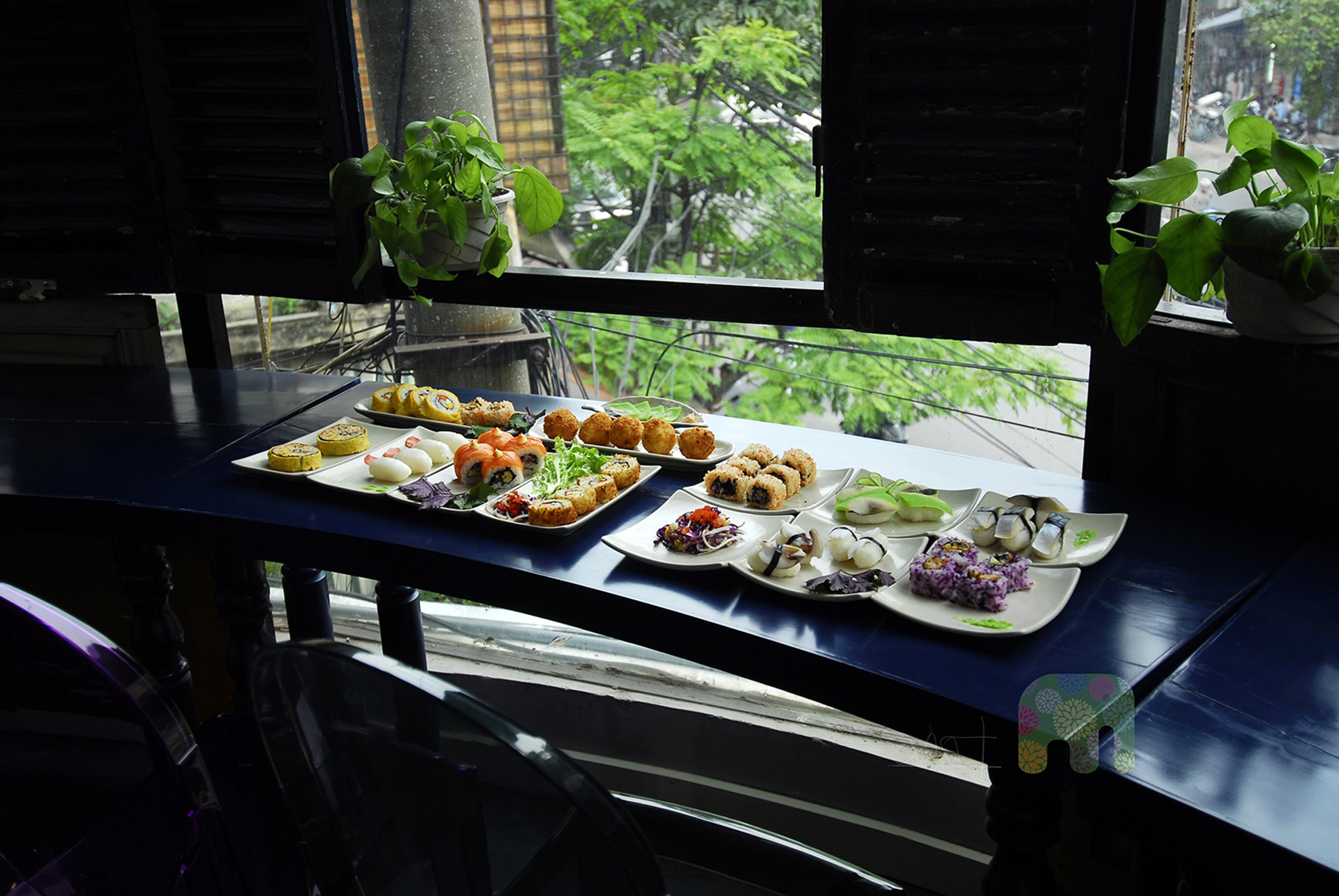 Ở Hà Nội, còn có quán cà phê phục vụ đồ ăn sushi của Nhật Bản.