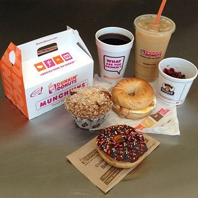 Bên cạnh các loại cà phê nổi tiếng như frozen dunkaccino, thức uống đá xay coolatta, bánh donut ngon tuyệt hảo hàng đầu thế giới, Dunkin' Donuts còn có các loại sandwich dùng với thịt xông khói, trứng và bánh sừng trâu, bánh nướng kiểu Anh được phục vụ suốt cả ngày. Không chỉ vậy, thương hiệu còn thể hiện sự quan tâm thực sự đến sức khỏe cộng đồng khi giới thiệu các thực đơn mang tên DDSMART, bao gồm các loại thực phẩm có giá trị năng lượng dưới 300 calo dành cho những người muốn ăn kiêng, ví dụ như sandwich trứng với bánh mì trắng, bánh cuộn wake-up, các loại thức uống từ cà phê, trà, thức uống đá xay với sữa ít béo.