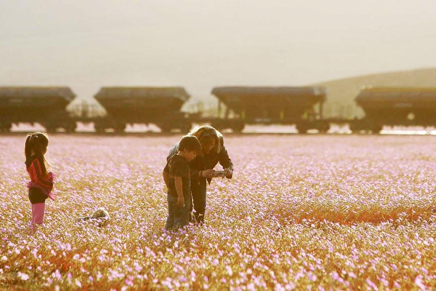 Sa mạc Atacama của Chile, là một trong những vùng khô hạn nhất thế giới, bỗng nhiên được bao phủ bởi cả một rừng hoa dại.
