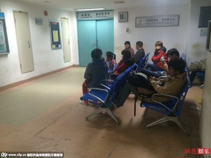 | Người nhà Diêu Bối Na túc trực tại bệnh viện để chờ thông tin sức khỏe của nữ ca sĩ. |