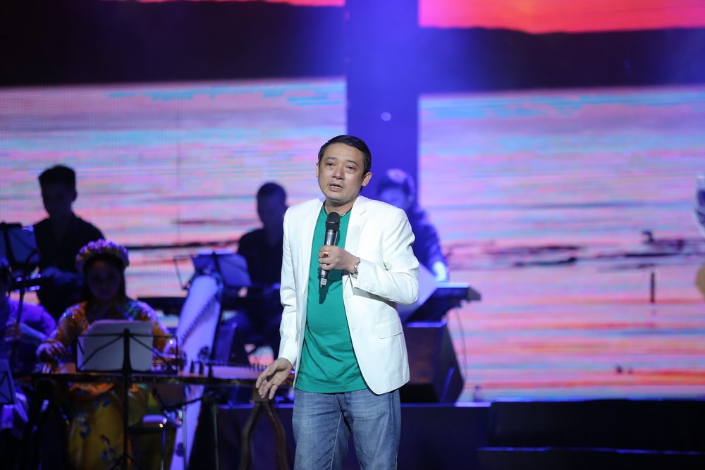 | Đêm nhạc Vinh Sử còn diễn ra trong tối 2/8 tại Nhà hát Lớn Hà Nội. Trên sân khấu, tác giả của những ca khúc buồn chia sẻ, ông vô cùng hạnh phúc khi có một đêm nhạc riêng tại nơi được coi là "thánh đường nghệ thuật". |