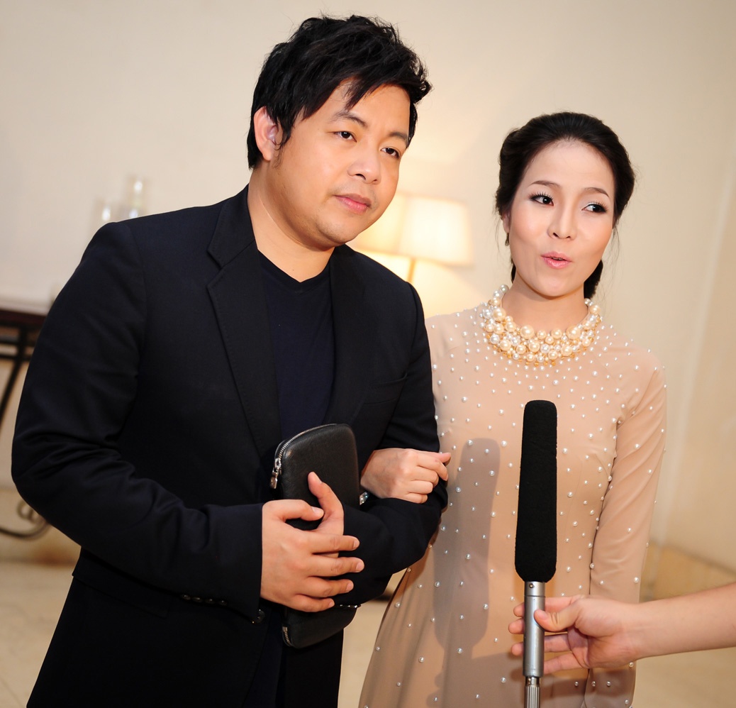 | Quang Lê trả lời phỏng vấn cùng ca sĩ Lưu Ngọc Hà. |