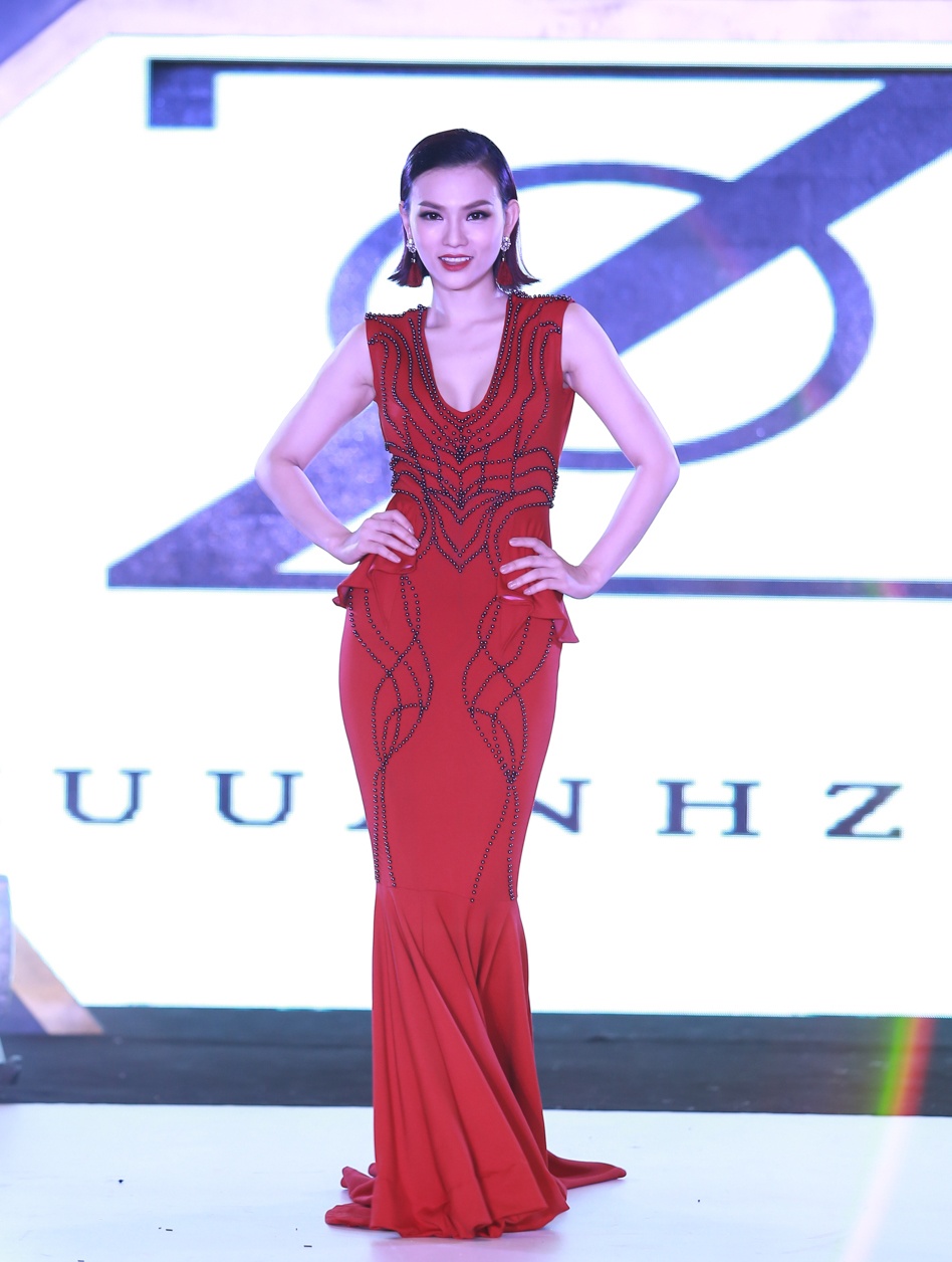 | Cũng tại sự kiện này, Thu Thủy còn tham gia trình diễn. Nữ ca sĩ tự tin sải bước trên sàn catwalk. |