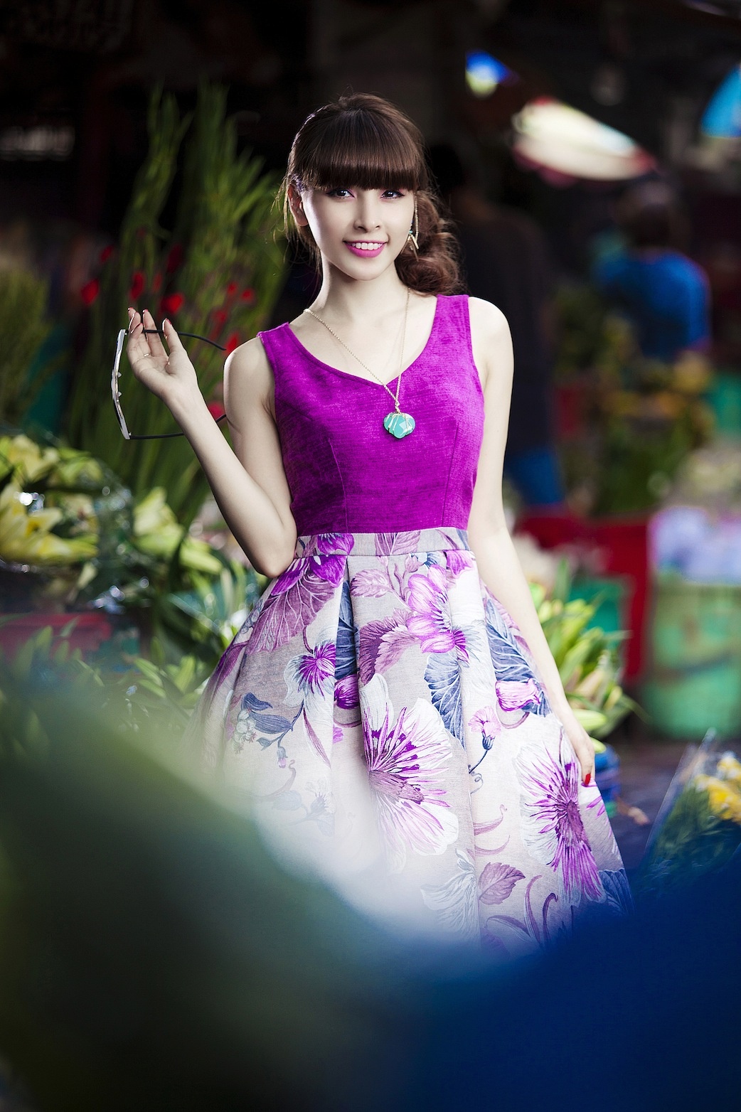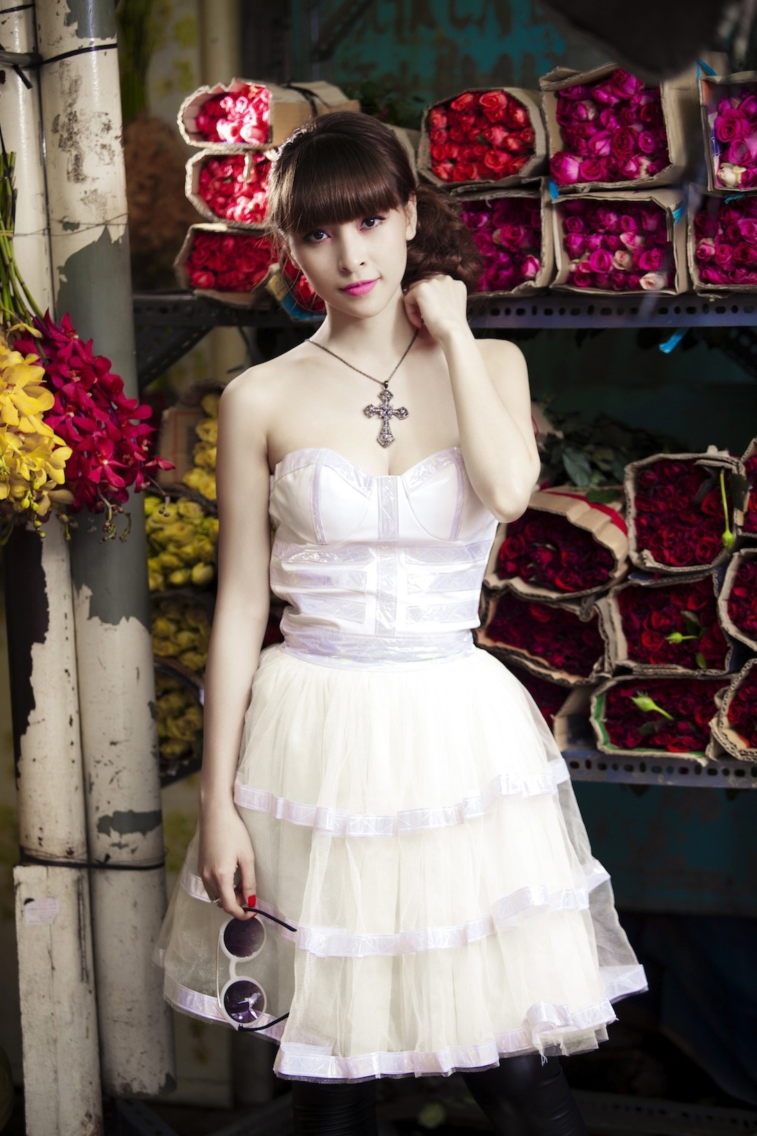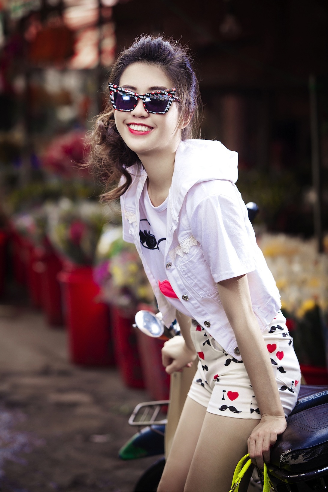 | Đừng quên phụ kiện đi kèm như kính retro và vòng cổ cá tính. |