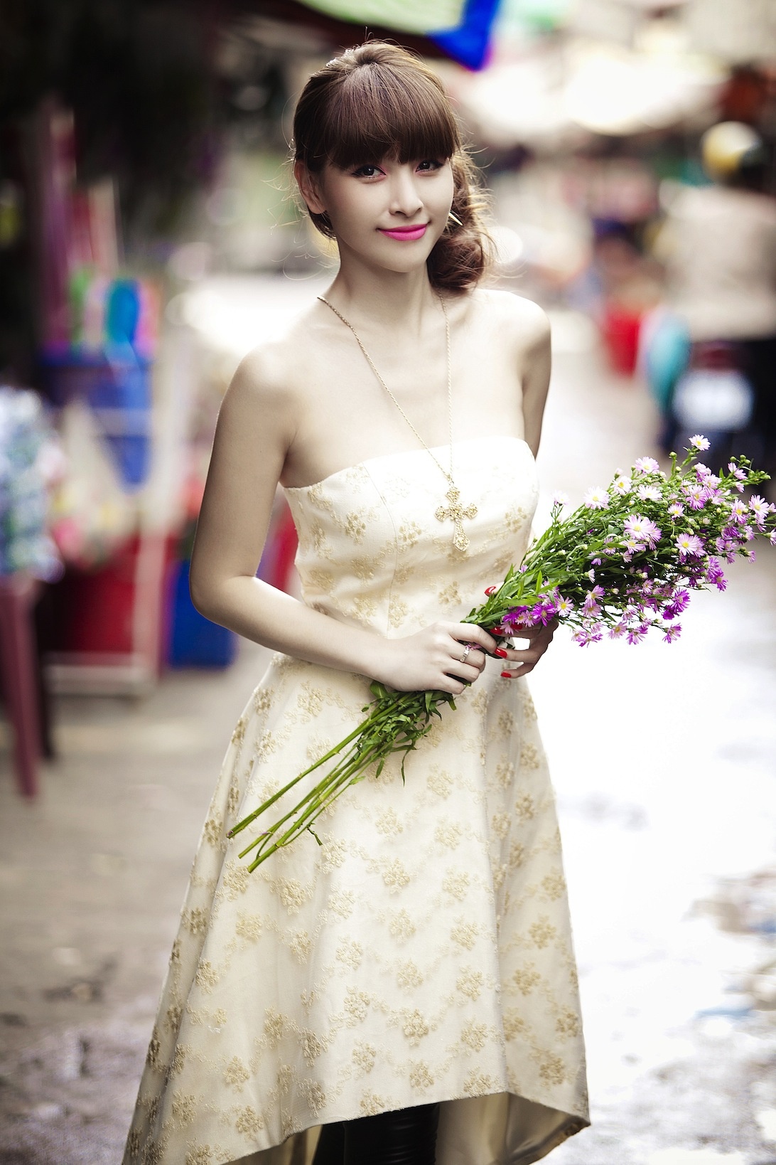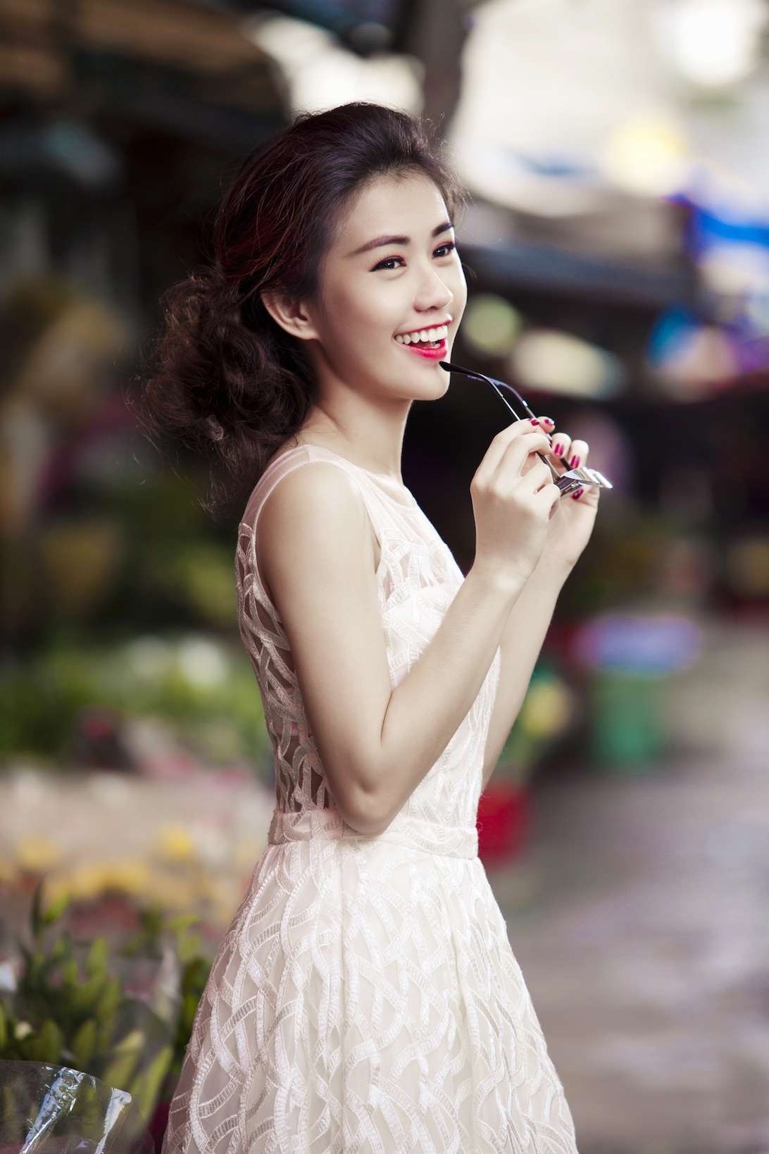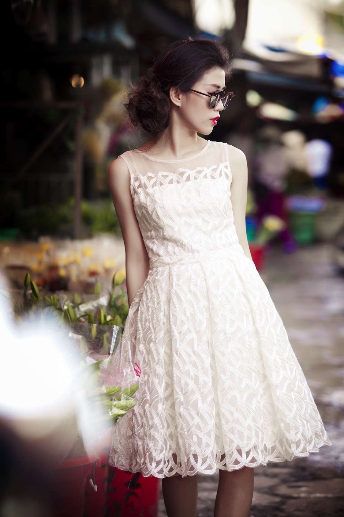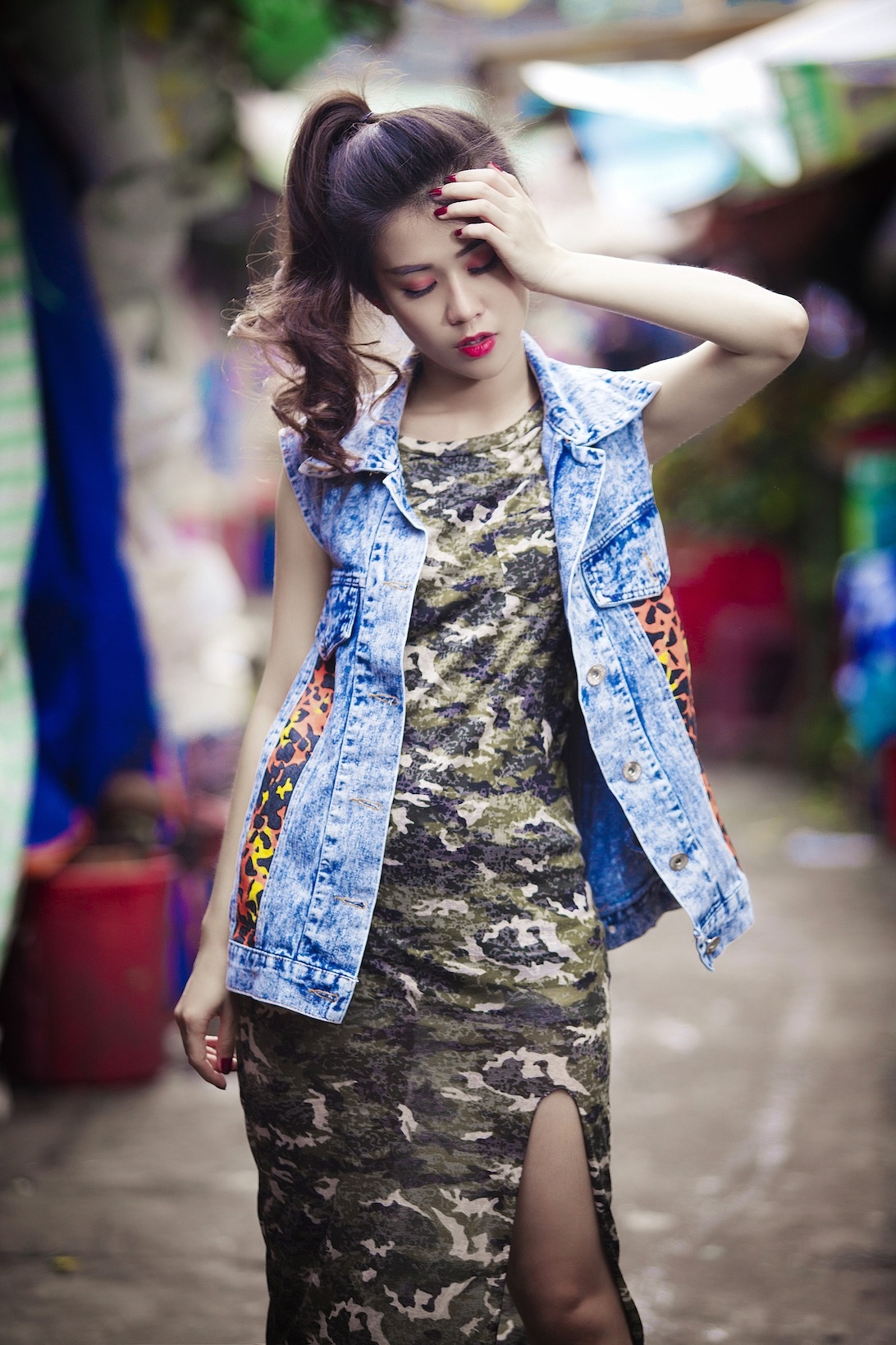 | Với những trang phục này, hãy chọn cho mình tông trang điểm tự nhiên, với điểm nhấn là đôi môi đỏ. |