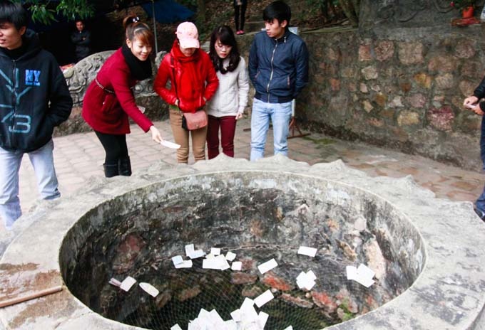 | Ném tiền xuống giếng ở đền Côn Sơn, Kiếp Bạc, tỉnh Hải Dương. |