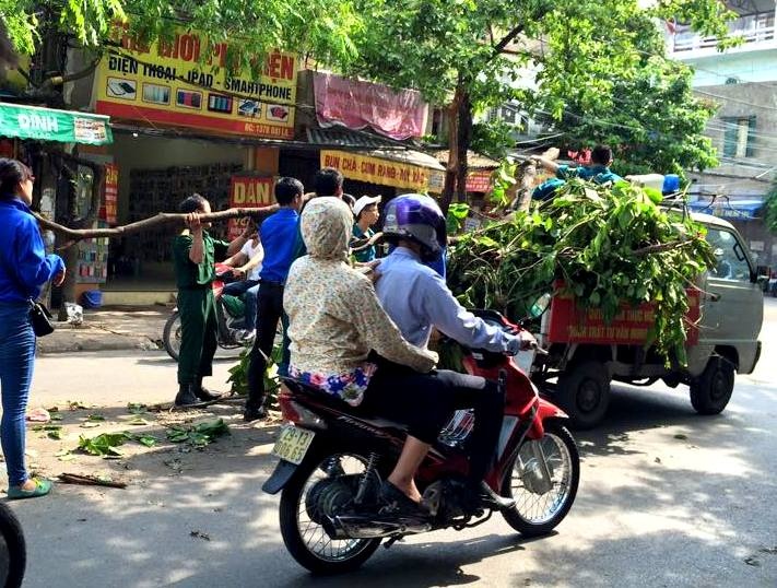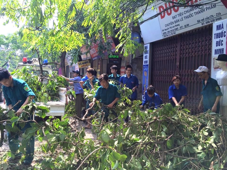 Sau buổi sáng 14/6 đánh giá về mức độ thiệt hại, vị trí có cây to gãy đổ làm cản trở giao thông, sinh hoạt của người dân, thanh niên tình nguyện đảm nhận nhiệm vụ thu dọn, làm sạch đường phố”.