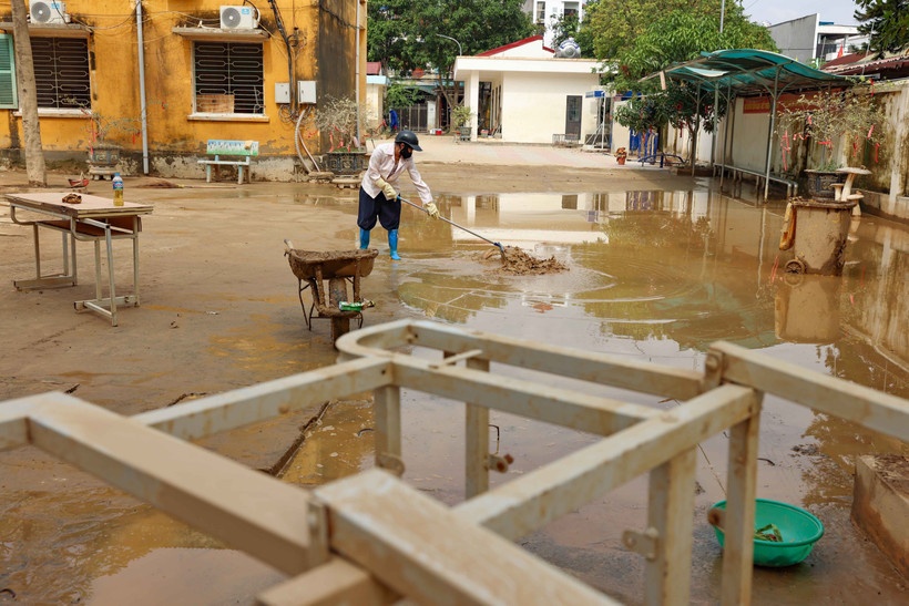 Tại Hà Nội, dù nước đã rút trong nhà ở một số khu vực, nhiều tuyến đường, ngõ xóm vẫn ngập sâu, gây khó khăn cho sinh hoạt và tiềm ẩn nguy cơ bùng phát dịch bệnh sau lũ.