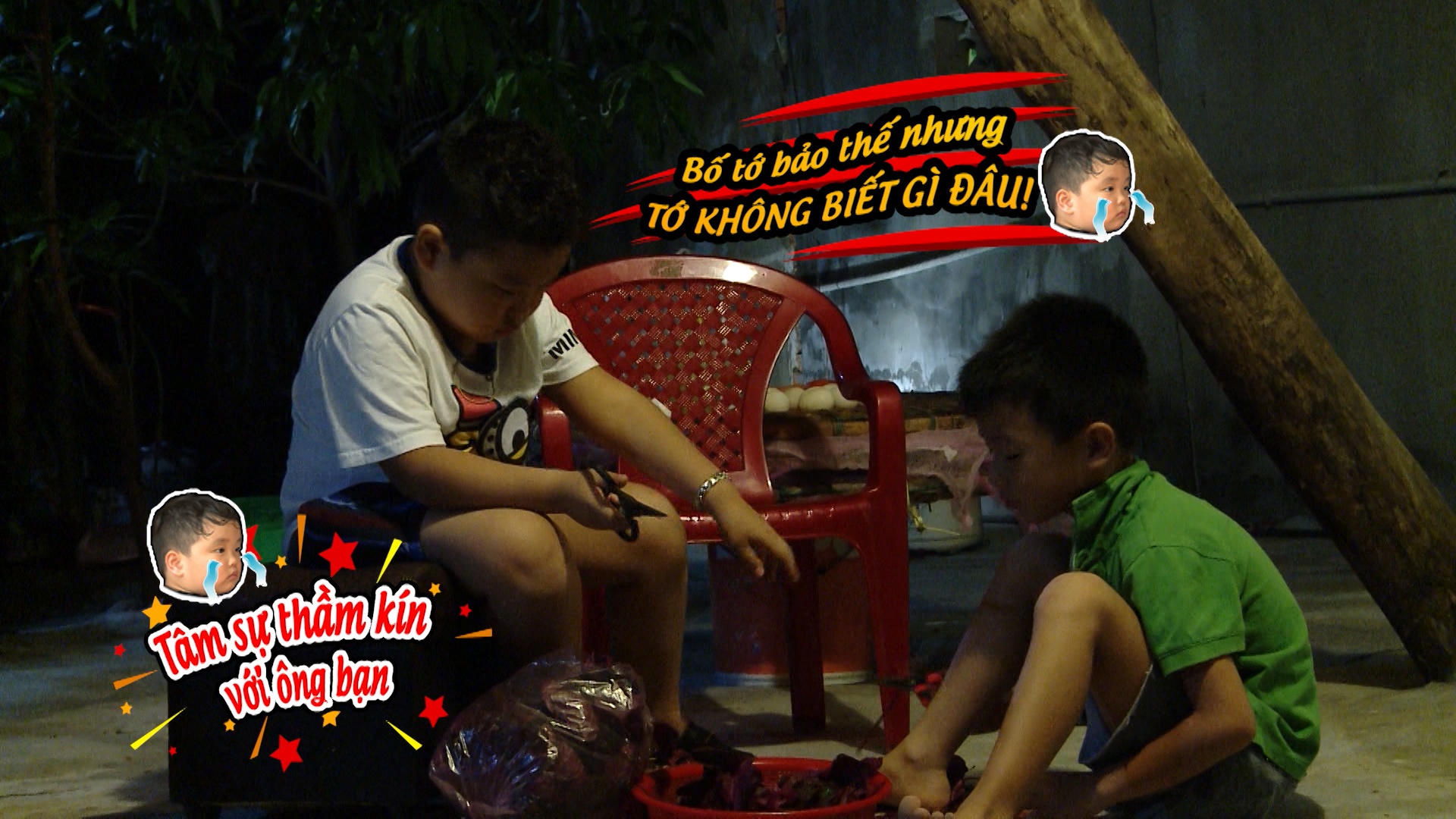 Khi hoàng hôn buông xuống là lúc các cặp bố con ai về nhà nấy để chuẩn bị cho bữa cơm tối. Trong khi 3 gia đình của Chíp, Totti, Bi “góp gạo thổi cơm chung” thì gia đình nhà Suti quyết định “ăn riêng". |