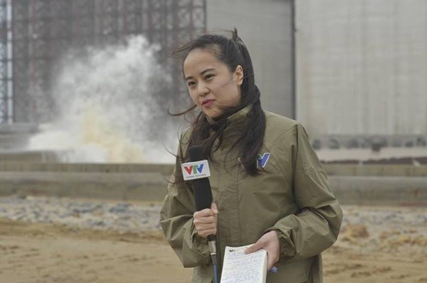 | Hình ảnh Hoàng Ngọc Bích - biên tập viên thời tiết của Đài VTV - không ngại nguy hiểm, tác nghiệp tại Vũng Áng - Hà Tĩnh do phóng viên Hoàng Anh chụp lại đã nhanh chóng được lan truyền trên các trang mạng xã hội. |