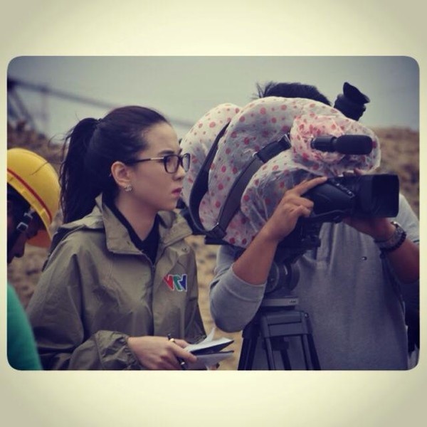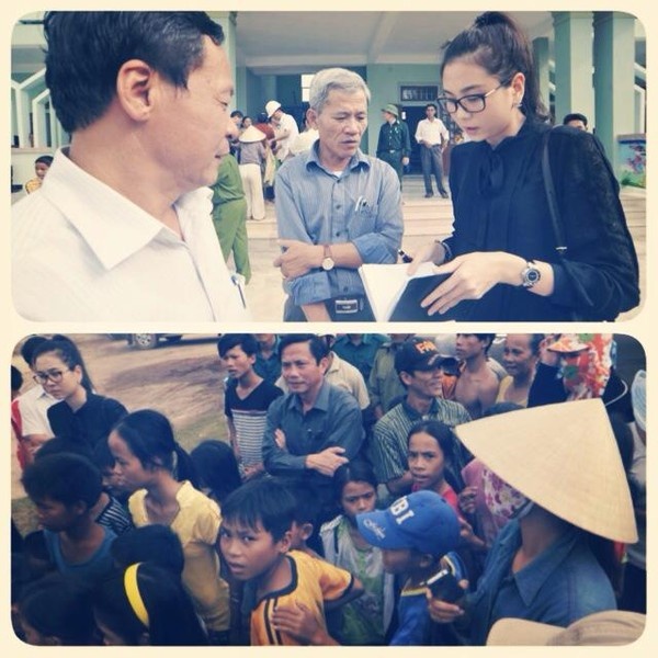 | Cách đó một ngày, cô cũng tác nghiệp tại Đông Hà - Quảng Trị - một trong những tỉnh miền Trung chịu ảnh hưởng của bão Haiyan (Ảnh: trang cá nhân Mai Ngọc). |