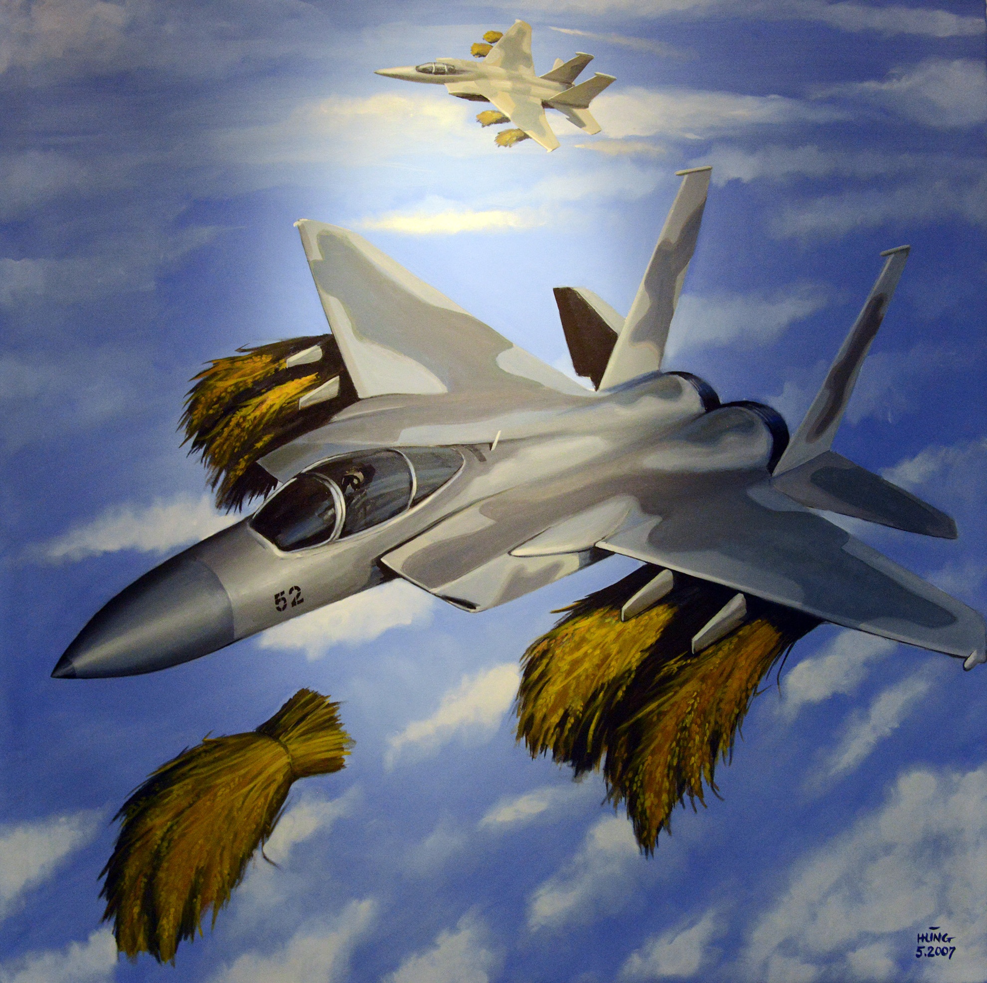 | Máy bay thả lúa là một trong số đó. Tranh được vẽ trên chất liệu sơn dầu. |
