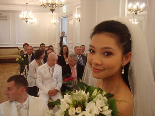 Trong lần sang Ba Lan đóng phim My Blood, Lưu Đê Ly cũng có dịp mặc váy cưới cô dâu.