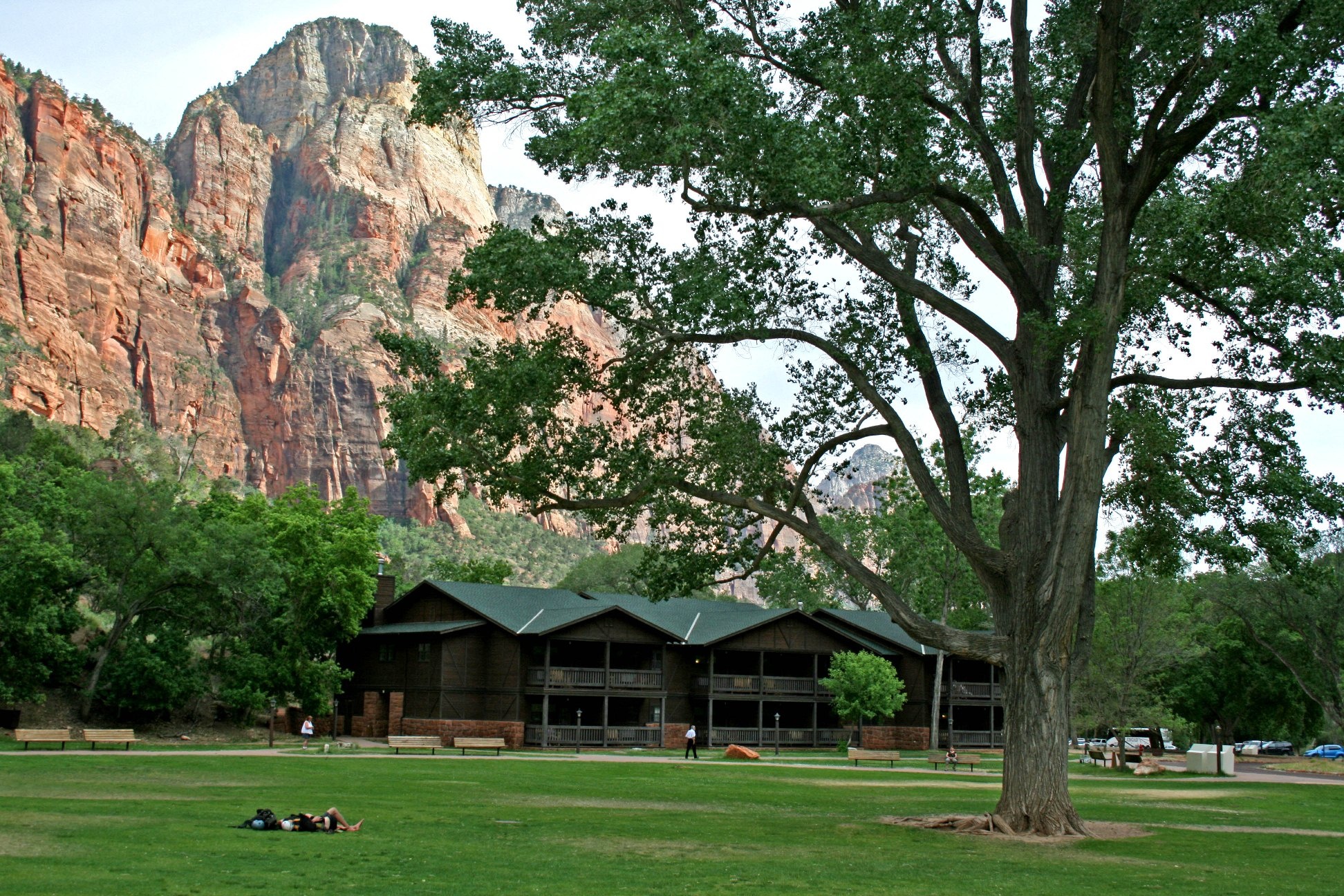 Một số khu vực sinh sống của các loài thú đặc hữu cấm du khách tiếp cận trong mùa làm tổ hay sinh sản. Những người muốn cắm trại ở đây phải xin giấy phép của công viên. Bên trong công viên chỉ có duy nhất cơ sở nghỉ dưỡng Zion Lodge được phép hoạt động, với cam kết chặt chẽ về bảo vệ môi trường. Ảnh: Mapio. |