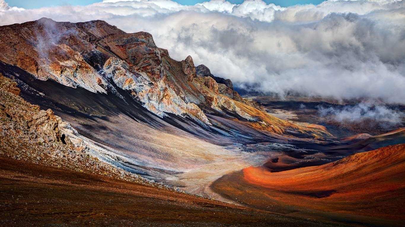 Công viên quốc gia Haleakalā: Thuộc đảo Maui, quần đảo Hawaii, Haleakalā trở thành công viên quốc gia vào năm 1961. Nơi này có hai phần: núi và bờ biển. Phần núi có miệng núi lửa Haleakalā, vô số tuyến đường leo, một khu vực cao cho du khách ngắm cảnh hoàng hôn và bình minh lộng lẫy. Khu Kīpahulu nằm gần biển, với các thác nước và thảm thực vật xanh tươi. Ảnh: Imagenesbing. |
