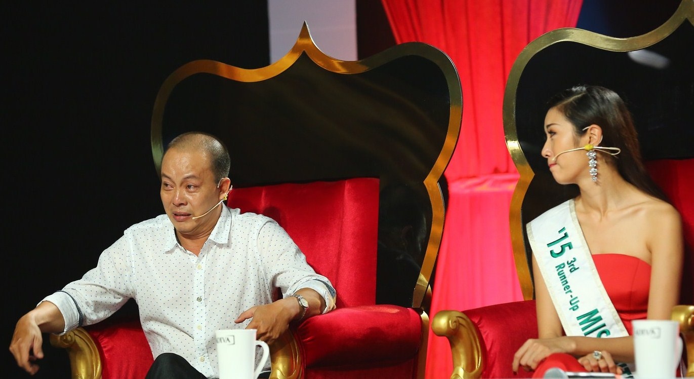 | NSƯT Đức Hải không ngăn được nước mắt khi nhớ lại năm 1995, anh vào Quảng Nam dựng vở cho một đoàn nghệ thuật. Chứng kiến cảnh các nghệ sĩ tự tay xách từng gàu nước, anh bèn đóng góp tiền lương để mua máy bơm cho đoàn nhưng mọi người từ chối. Sau này mới biết lý do là không có tiền đóng tiền điện. Ở bên cạnh, Á hậu Thúy Vân cũng đỏ hoe mắt vì xúc động. |