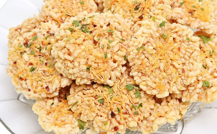 "Cửa hàng" chỉ gồm chiếc bàn, một cái ghế nhựa thấp, đôi gánh đựng cơm cháy và các thành phần ăn ,nhưng cơm cháy chà bông trên đường Nam Kỳ Khởi Nghĩa (gần ngã tư Nam Kỳ Khởi Nghĩa - Lê Lợi, quận 1) khá nổi danh với thực khách TP HCM và Việt kiều. Một phần cơm cháy tại đây phong phú với mỡ hành, ruốc (chà bông) và được chế biến khá hợp vị. Ngoài mua ăn liền, bạn có thể đặt hàng để mang đi xa biếu người thân. Yêu cầu của một lần đặt hàng mang đi là từ 10 phần trở lên, mỗi phần có giá nhỉnh hơn phần mua ăn liền khoảng 10.000 đồng và phải đặt trước 2-3 ngày (không cần đặt cọc trước). Cơm cháy chà bông Nam Kỳ Khởi Nghĩa bán từ 14-17h hàng ngày, Giá một hộp cơm cháy cùng chà bông và 1 bịch mỡ hành là 35.000 đồng. Ảnh: Mecuatin. |