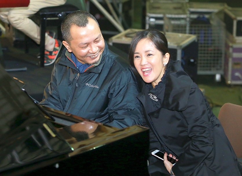 | "Cô bống" Hồng Nhung cười rạng rỡ bên tay keyboard Lưu Hà An. |