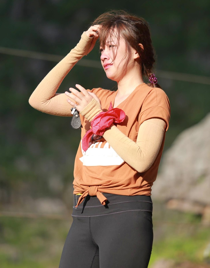 | Giọt nước mắt và nỗi lo sợ của cô gái độ Nâu - Băng Di - khi chứng kiến đồng đội thực hiện thử thách khó khăn. |