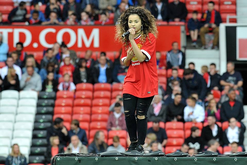 | Ca sĩ người Anh Ella Eyre khuấy động bầu không khí trước trận đấu diễn ra chiều ngày 14/6 theo giờ địa phương. Ảnh: Mirror. |
