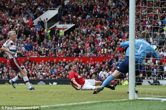 | Louis Saha có pha dứt điểm hiểm hóc vào góc xa mở tỷ số cho Huyền thoại "Quỷ đỏ" ở phút thứ 9. Ảnh: Mirror. |
