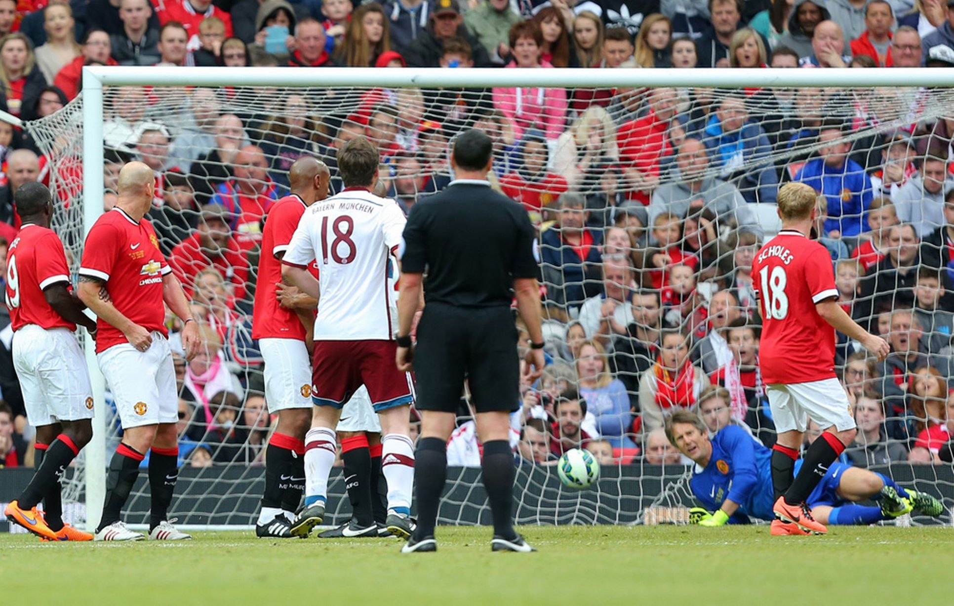 | Thủ thành huyền thoại Van Der Sar không thể làm gì hơn trong tình huống này. Ảnh: Mirror. |