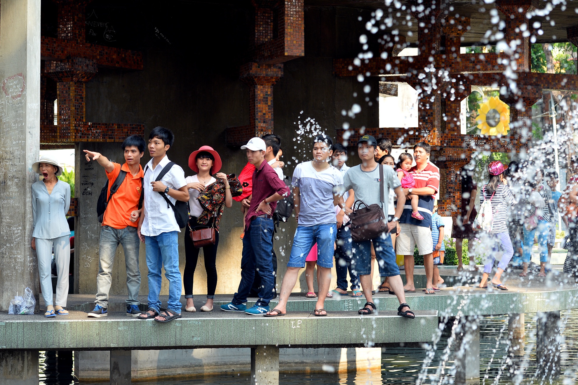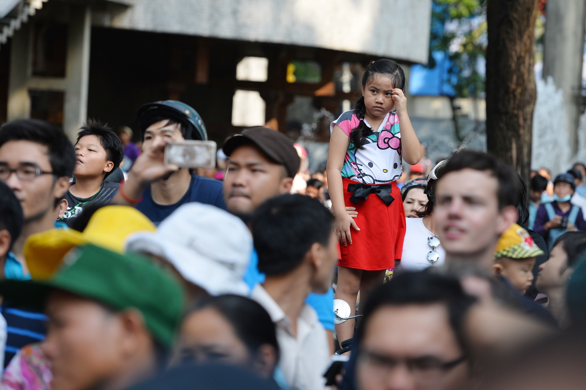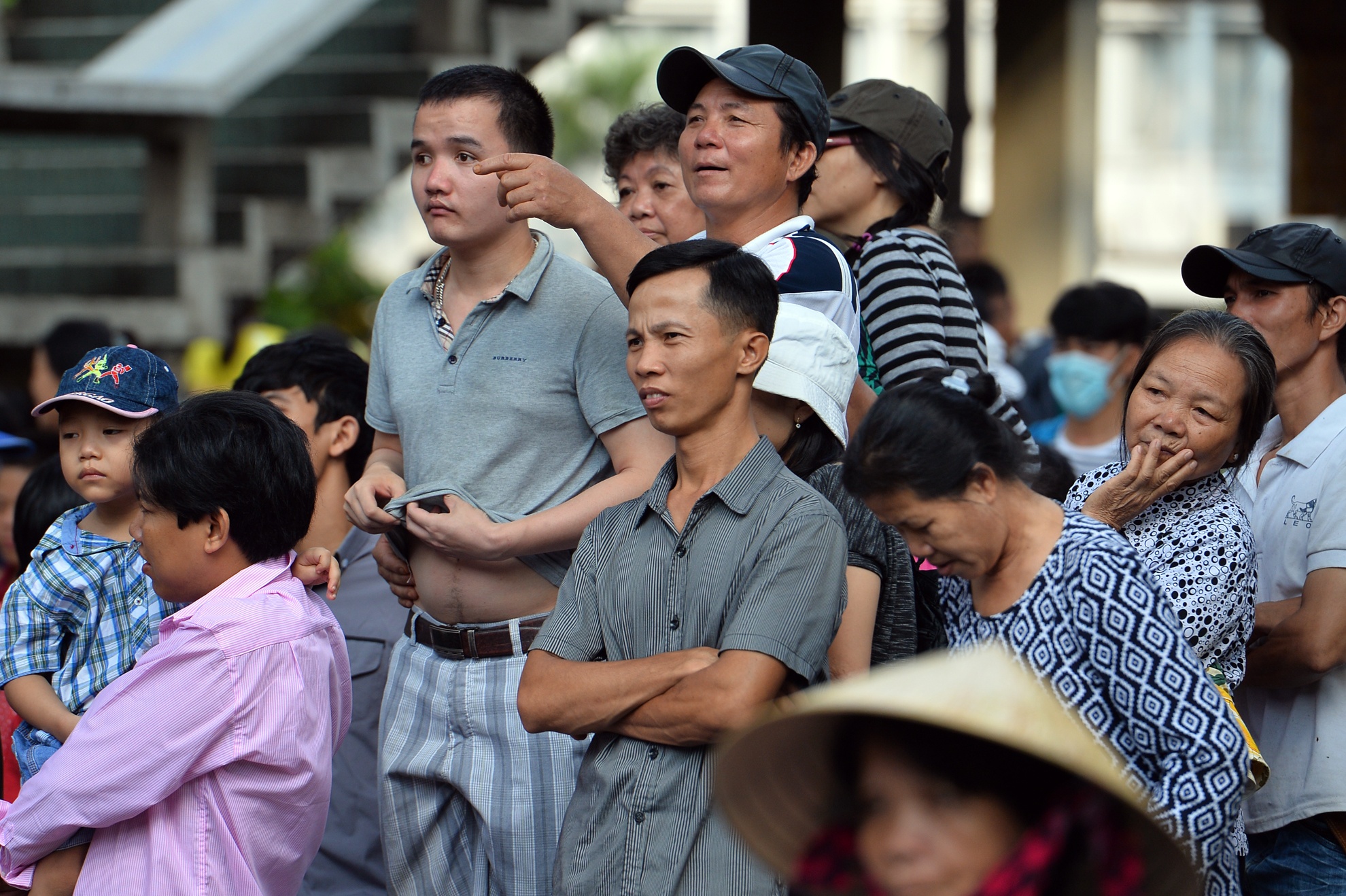 | Anh Tùng, một người dân ở TP HCM đưa vợ con đến khu vực hồ Con Rùa để xem. Anh cho biết, sống ở Sài Gòn từ bé mà chưa lần nào được chứng kiến nghi lễ hùng tráng này. |