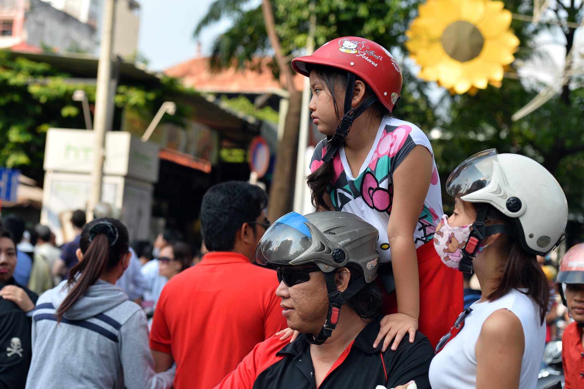 | Các em nhỏ còn chưa hiểu diễu binh là gì cũng được bố mẹ cho đi xem. |