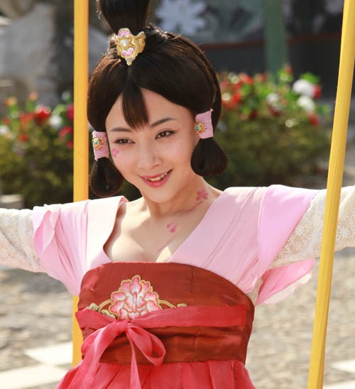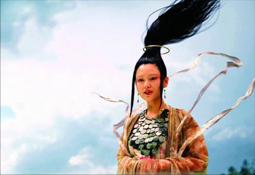 | Người đẹp Thư Sướng trong phim Thiên long bát bộ với mái tóc như cây chổi lông gà hết "khấu hao". |