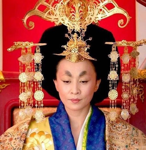 | Ân Đào đóng Võ Tắc Thiên và mái tóc rất khó miêu tả. |