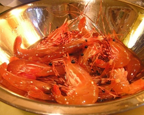Một trong những cách ăn sống tôm phổ biến nhất sẽ được thể hiện rất rõ qua một món ăn có tên gọi "tôm say rượu". Tại Trung Quốc, tôm được đặt trong một chiếc bát rồi rót đẫm rượu lên trên khiến chúng có phản ứng "say", ít chống cự hơn. Đồng thời, rượu cũng là một loại gia vị tăng hương vị độc đáo cho món ăn. Thông thường sẽ có một chiếc nắp nhỏ đậy trên bát để ngăn tôm nhảy ra ngoài.