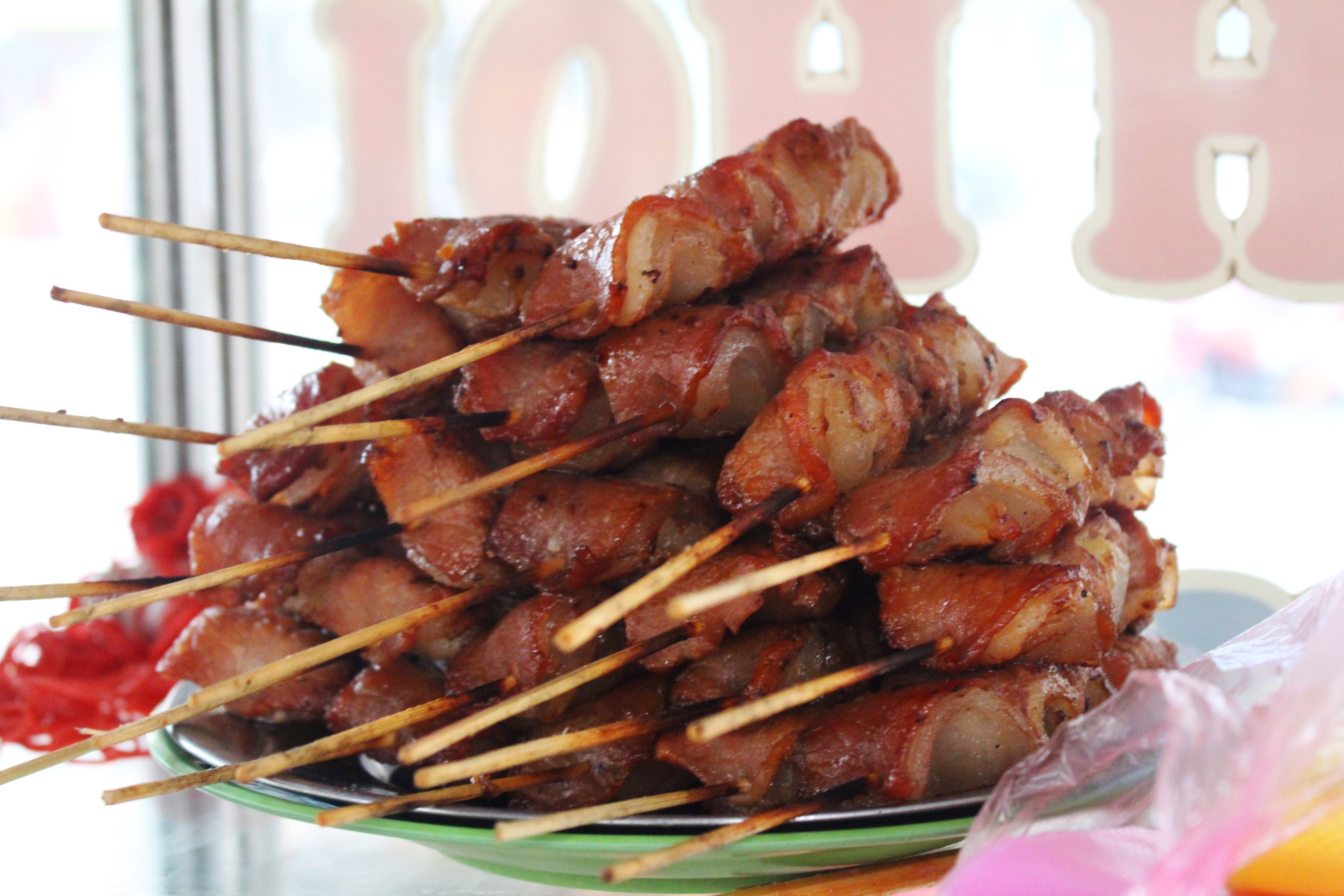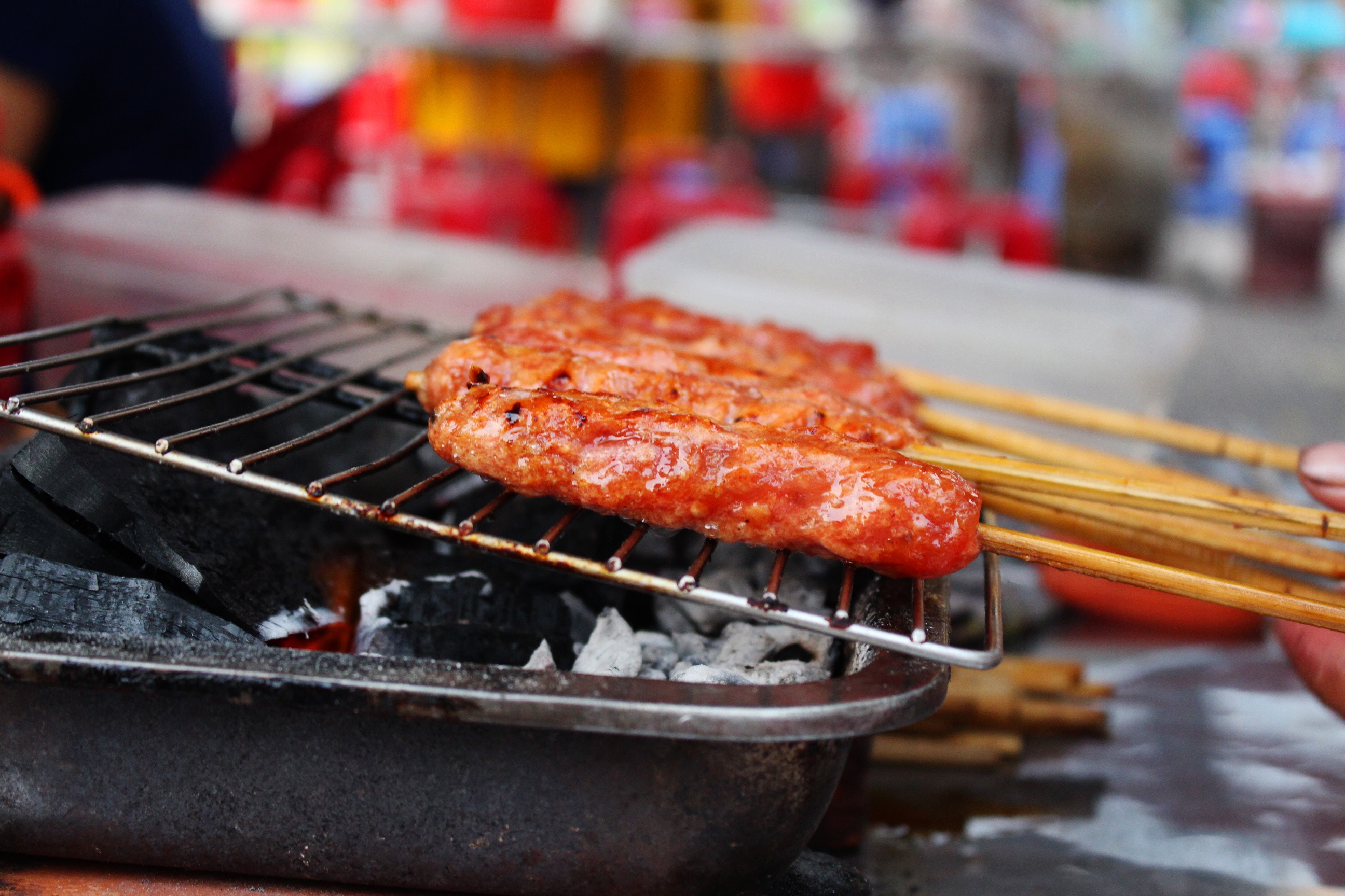 Thịt nướng xiên được bán kèm nhiều món ăn khác nhau như bánh tằm bì, bánh cuốn, cơm tấm...