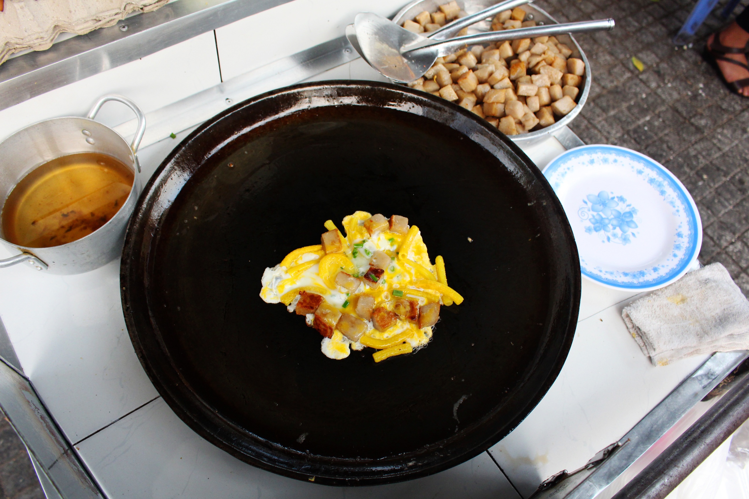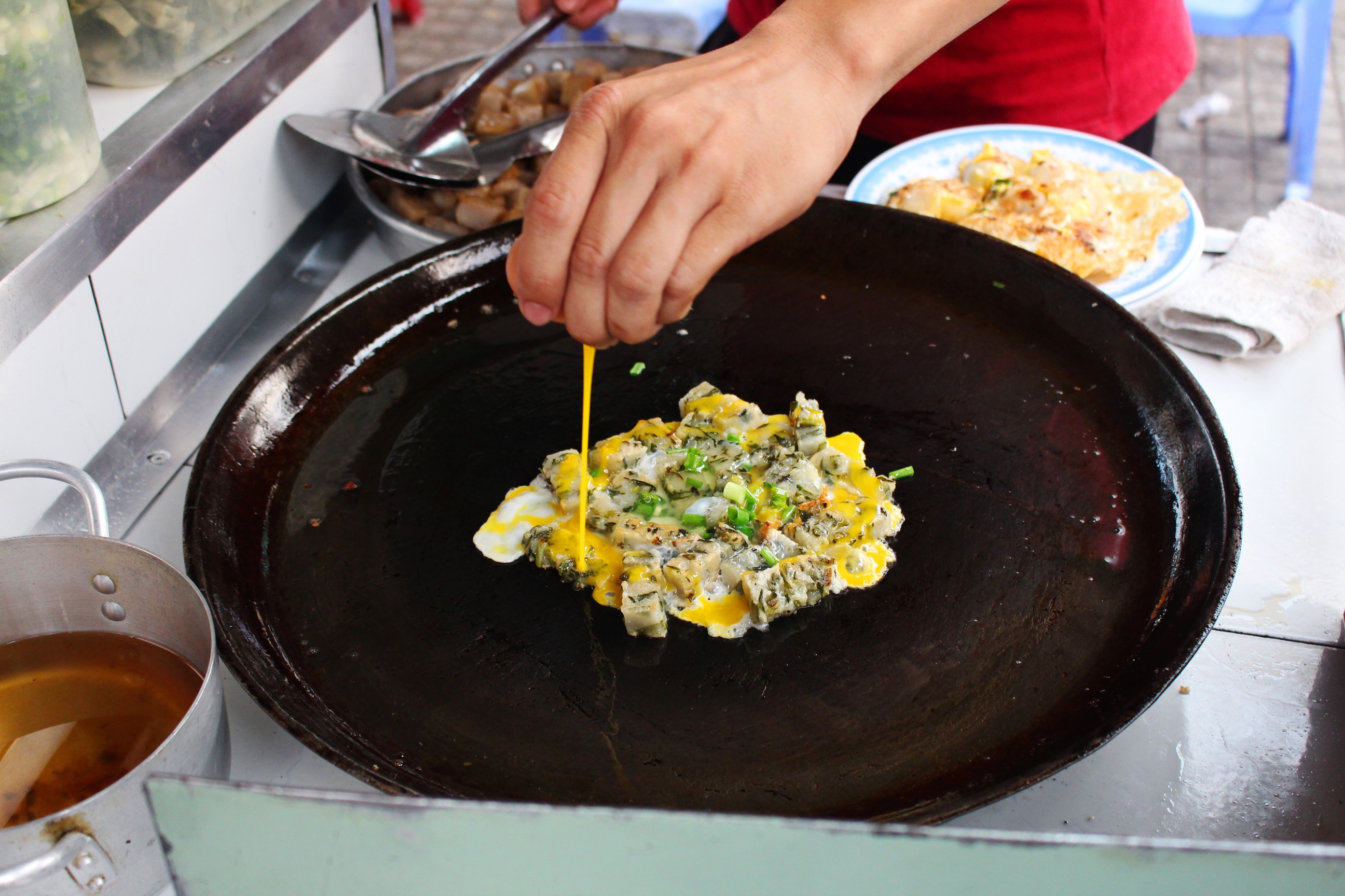 Bánh hẹ chiên trứng có giá khoảng 12.000 đồng một đĩa.