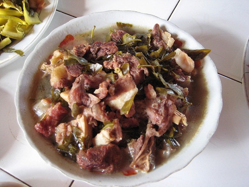 | Thịt trâu nhừ mềm thấm vị lá lồm và gạo tấm, ăn rất ngon. |