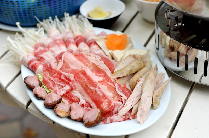 Món tiếp theo quen miệng khách hơn là lẩu riêu bò ba chỉ cuốn nấm kim châm. Ngoài canh riêu ngọt chất thì bò ba chỉ cuốn nấm kim châm chính là thứ mê hoặckhách. Thịt bò Canada xịn, mềm và dậy mùi hơn hẳn, kết hợp với nấm giòn ngọt đúng là khiến khách khó ngơi đũa. Kiểu Âu - Á kết hợp này chắc chắn ngon hơn lẩu riêu thông thường rất nhiều.