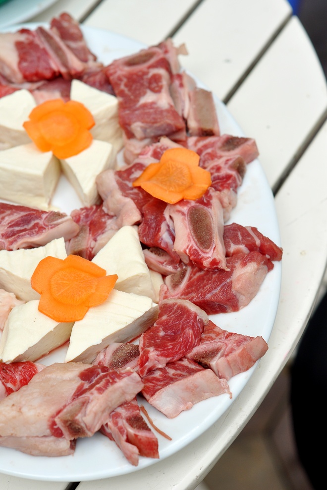 Cuối cùng, lẩu sườn bò Canada chắc chắn hợp gu người ăn “dỗ mồi”. Những miếng sườn lạ mắt, có 1 phần xương và 9 phần thịt. Thớ thịt lại dày khi chần lên mềm ra rất nhanh và ngấm vị nước lẩu chua chua cay cay, cắn vào chỉ biết xuýt xoa thích thú với cảm giác “ngập răng, đã miệng”. Đây cũng là loại lẩu đắt nhất - 350.000 đồng, còn hai món trên đồng giá 250.000 đồng.