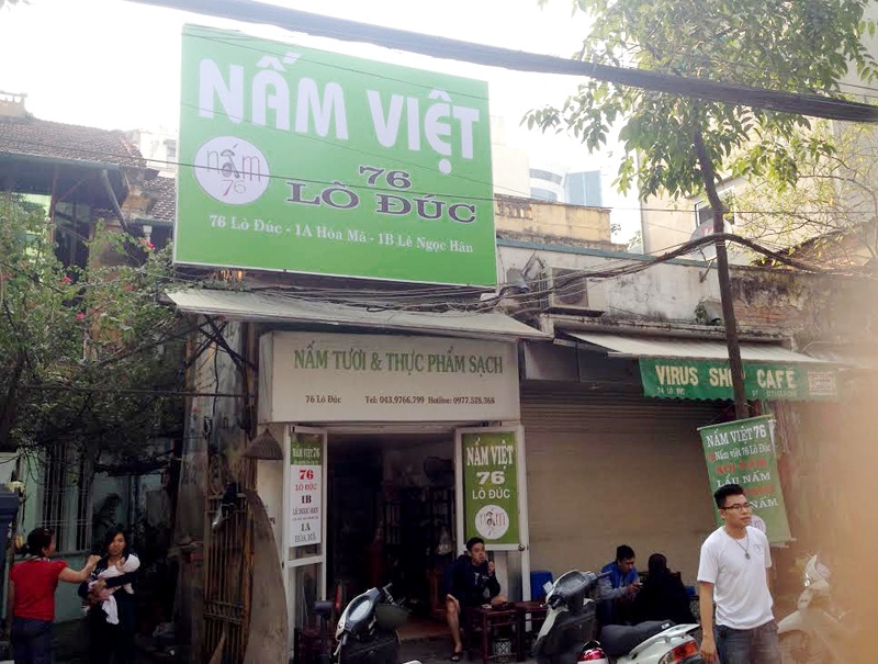 Quán này tên Nấm Việt 76, thực chất đã được rất nhiều người biết đến chứ không chỉ "hot" ảo trên mạng. Ban đầu quán chỉ là một tiệm bé “tin hin” ở phố Lò Đúc, nhờ đi tiên phong về xôi nấm, cháo nấm hay bún nấm ngon lạ, cộng thêm ưu điểm quán nhỏ nhưng sạch sẽ, có phong cách riêng nên nơi đây nhanh chóng thu hút được dân công sở cùng các thực khách trẻ. Chỉ sau gần 2 năm kinh doanh, quán đã có tới 3 cơ sở. Hai tiệm ở Lò Đúc và Hòa Mã chủ yếu ngồi vỉa hè, còn tại Lê Ngọc Hân thì rộng rãi nhất thích hợp cho các nhóm khách đông. Cứ giờ cao điểm là buổi trưa hay buổi tối, cả 3 cơ sở đều đắt hàng như nhau, khách ngồi kín chỗ.
