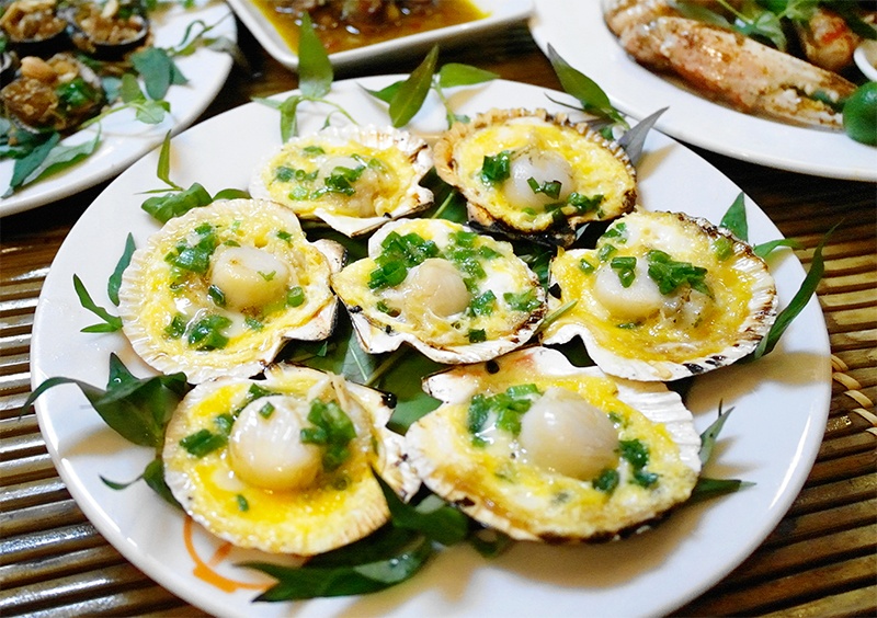 Sò điệp nướng trứng cút - sự kết hợp sáng tạo giữa vị dai giòn của sò và vị béo ngậy của trứng.