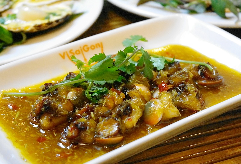 | Ốc mặt trăng xào sả ớt ăn kèm bánh đa - sản vật đến từ huyện đảo Lý Sơn, riêng chỉ có tại Ốc Vi Sài Gòn. Ốc giòn, ngọt kèm theo hương thơm nhẹ của sả, cay nồng của ớt, ăn rất kích thích. |