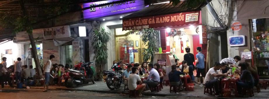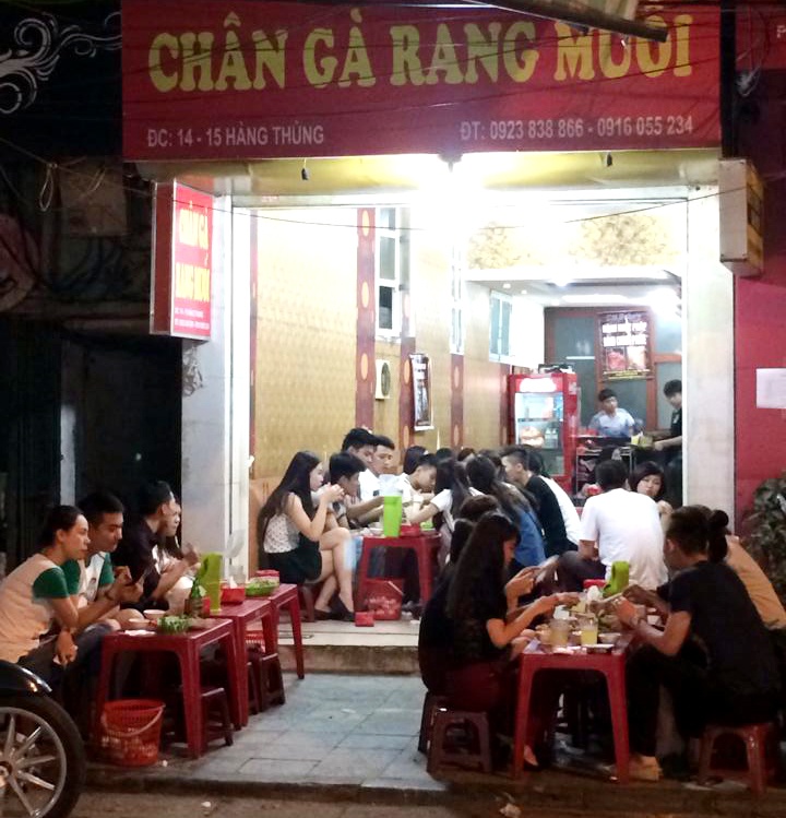 Mới rầm rộ khoảng một năm nay, song giờ cứ nhắc đến chân gà rang muối là mọi người nghĩ ngay đến phố Hàng Thùng – nơi có tiệm bình dân được coi là dẫn đầu về “trào lưu” chân gà rang muối tại Hà Nội.