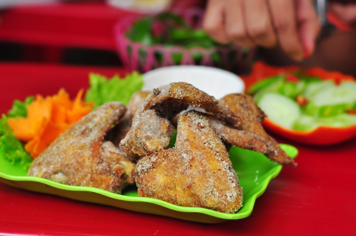 Tất nhiên những thực đơn phổ biến như cánh gà, đùi gà rang muối là món không thể thiếu. Tuy quen thuộc song chẳng bao giờ làm khách nhàm chán, nhất là khi tay nghề rang muối của chủ tiệm này được nhiều người đánh giá là "tuyệt đỉnh công phu" – đồ ăn tươi ngon, đậm đà vừa tới, rất ráo, không hề ngấm dầu mỡ hay gây ớn ngấy. Chưa kể đến tài pha nước chấm khéo léo - chua cay ngọt đúng kiểu, chấm cùng đồ rang muối có tác dụng đưa đẩy người ăn hơn rất nhiều.