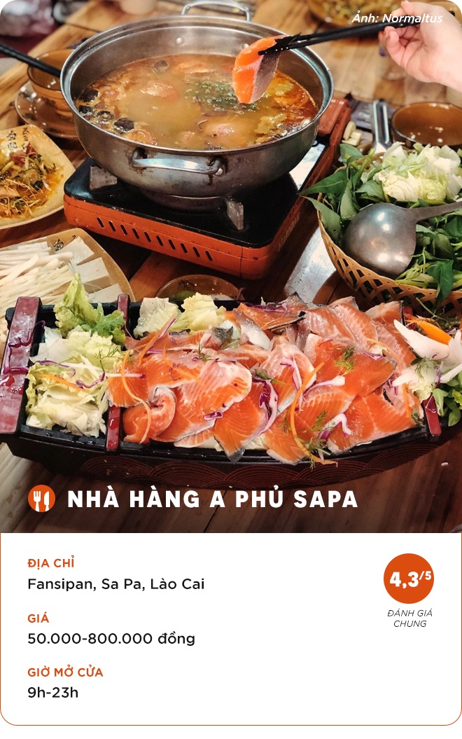 Tung Nguyen: "Nơi ưng ý nhất từ trước đến nay trong các chuyến lên Sa Pa! Mình tình cờ phát hiện chỗ này không quá hoành tráng nhưng gần như đáp ứng mọi mong muốn sau những chuyến khám phá mệt nhọc. Món lẩu cá tầm rất ngon miệng, chỗ ngồi ấm cúng, phục vụ tận tình và giá cả hợp lý".
