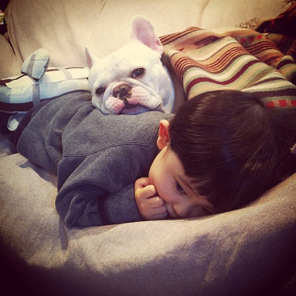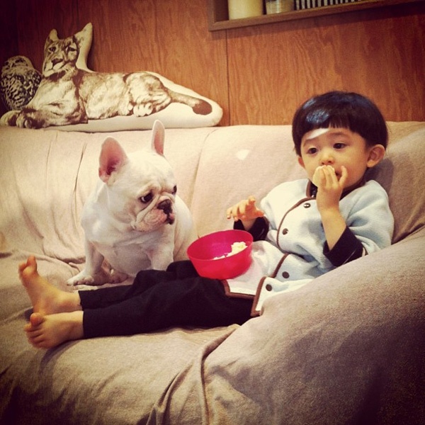 Một nhóc tì người Nhật khác cũng từng trở thành tâm điểm của sự chú ý khi xuất hiện với quả đầu nấm ngộ nghĩnh cùng "người bạn thân" là chú chó Bulldog.