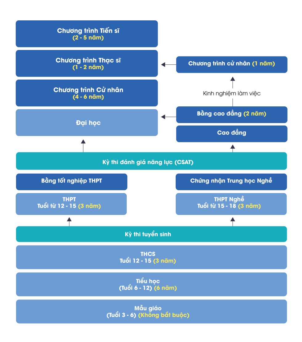 Cơ cấu giáo dục tại Hàn Quốc. Nguồn: NCEE . |